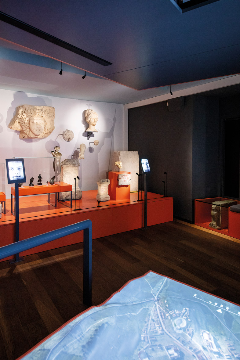 Den Mittelpunkt der Ausstellung bilden ein interaktives Modell der Entwicklung des Stadtgebiets von Avenches und eine filmische Zusammenfassung der Geschichte Aventicums, der einstigen Hauptstadt der Helvetier. „Eine technische Herausforderung“, so die Museumsdirektorin Marie-France Meylan Krause, die die Besucher eines der ältesten Museen im Waadtland begeistern dürfte, und zugleich eine Möglichkeit, sie zum Erkunden der vielen sichtbaren Überreste der antiken Stadt ausserhalb des Museums zu motivieren.