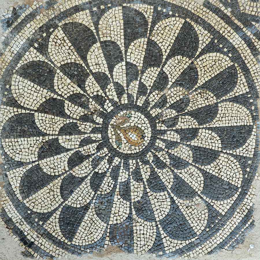Elle sera redécouverte en automne 1864 par Auguste Caspari, alors Conservateur du Musée romain d’Avenches. De ce pavement, relativement bien conservé malgré les aléas du temps, une trentaine de fragments ont été prélevés et déposés au Musée. Faute d’espaces d’exposition suffisants, ils dorment actuellement dans le dépôt archéologique du site.